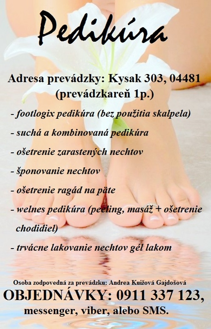 V budove drobnej prevádzkarne Kysak 303 je otvorená nová prevádzka pedikúry.